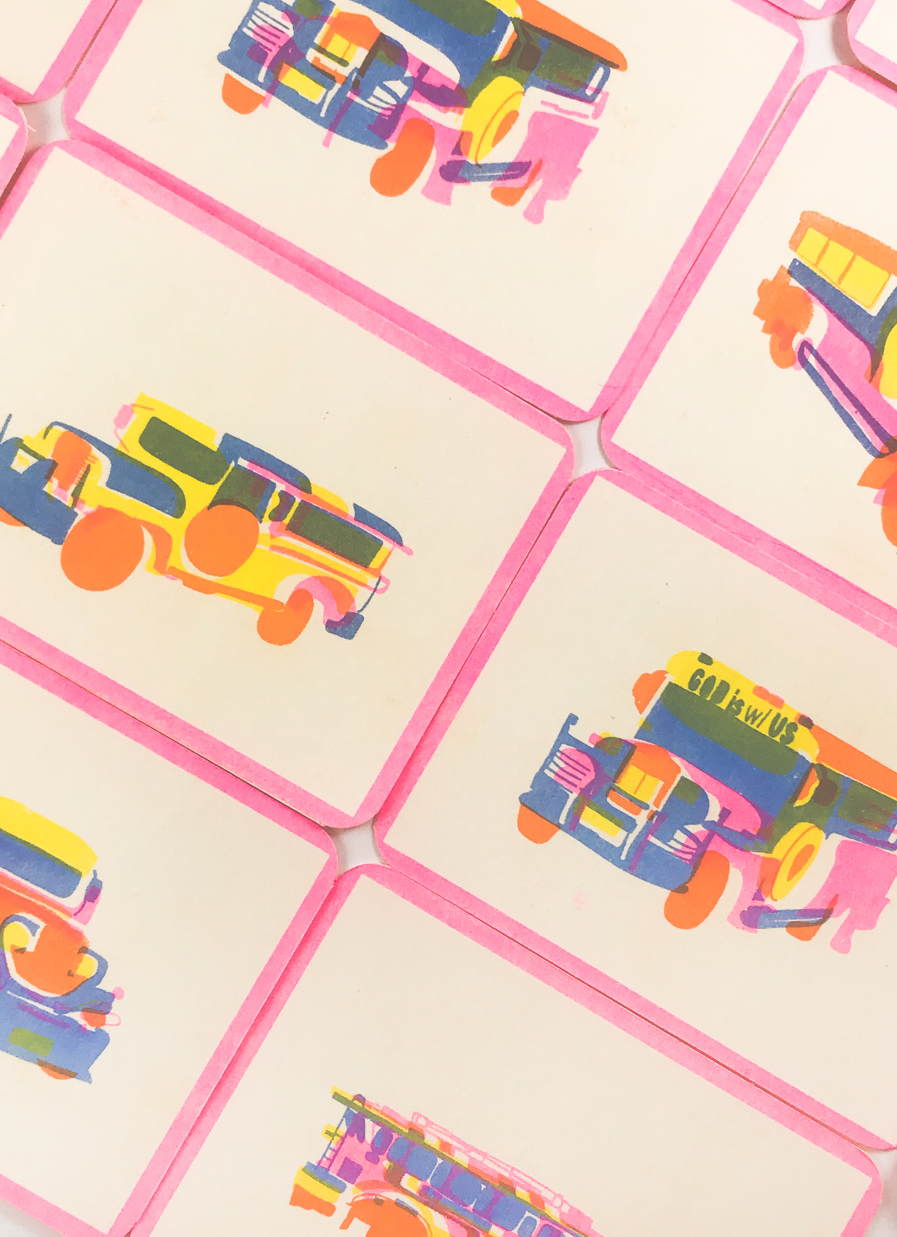 Printed with soy-based inks! Featuring neon colors. Printed in Portland, Oregon, mostly by hand.