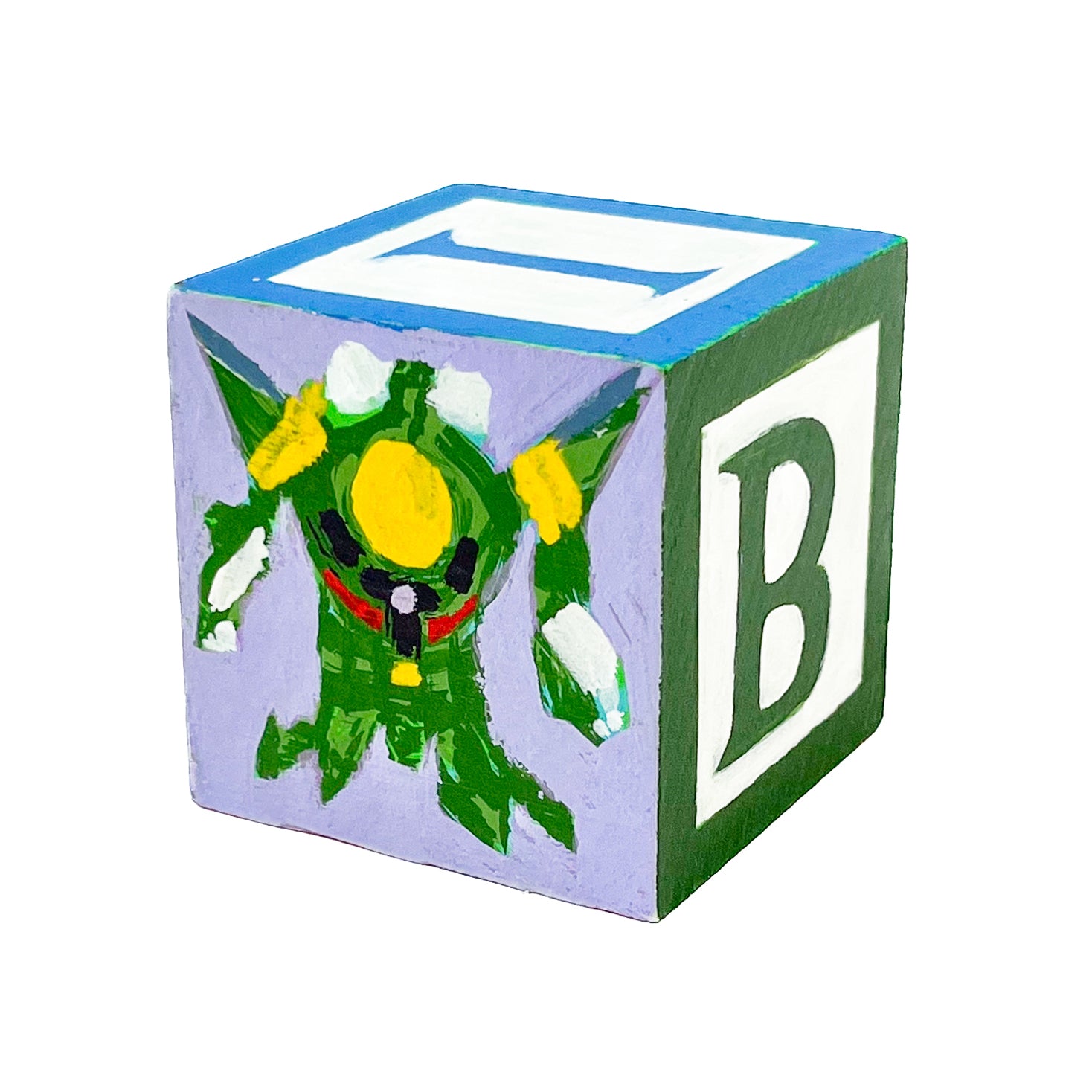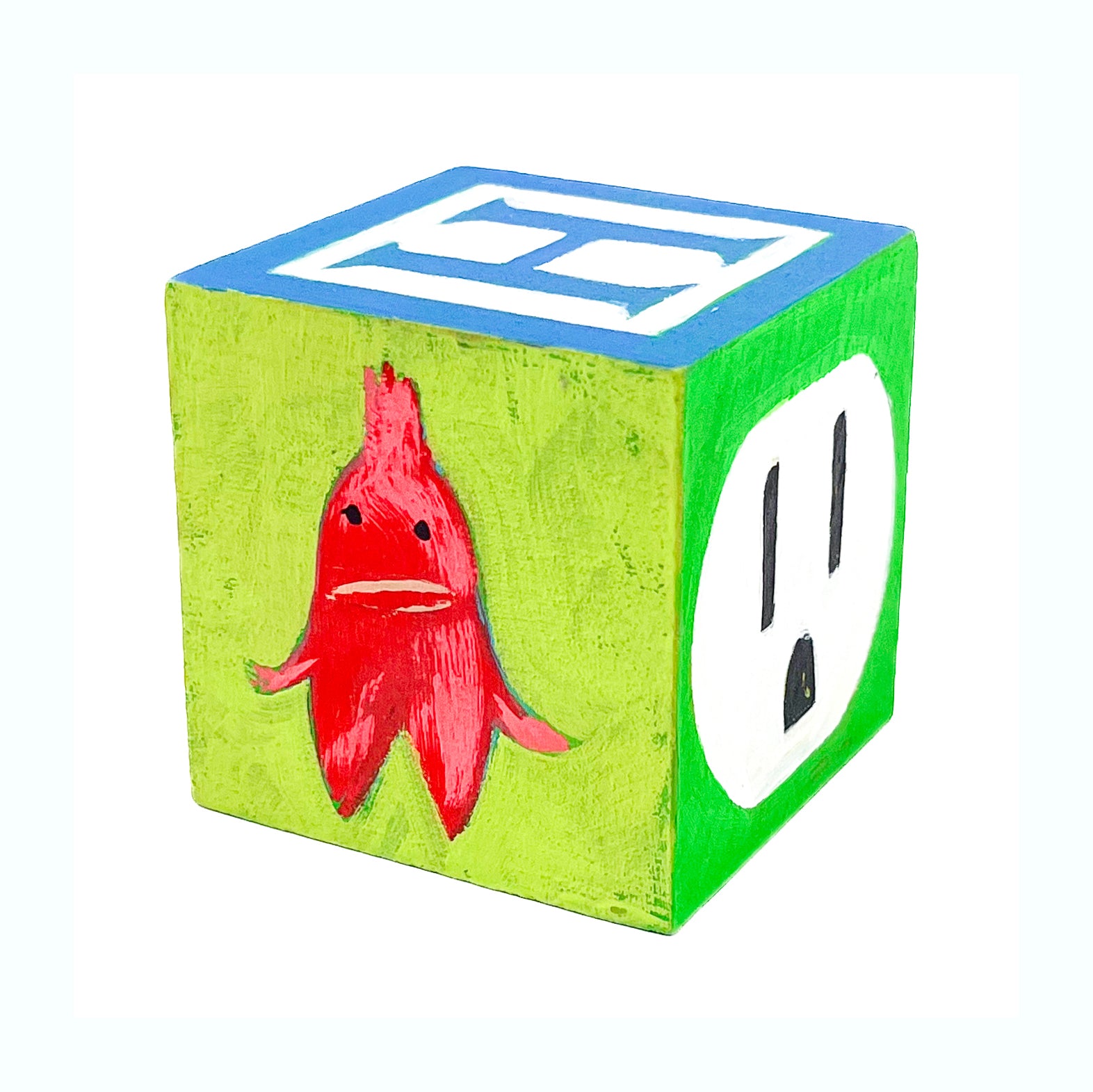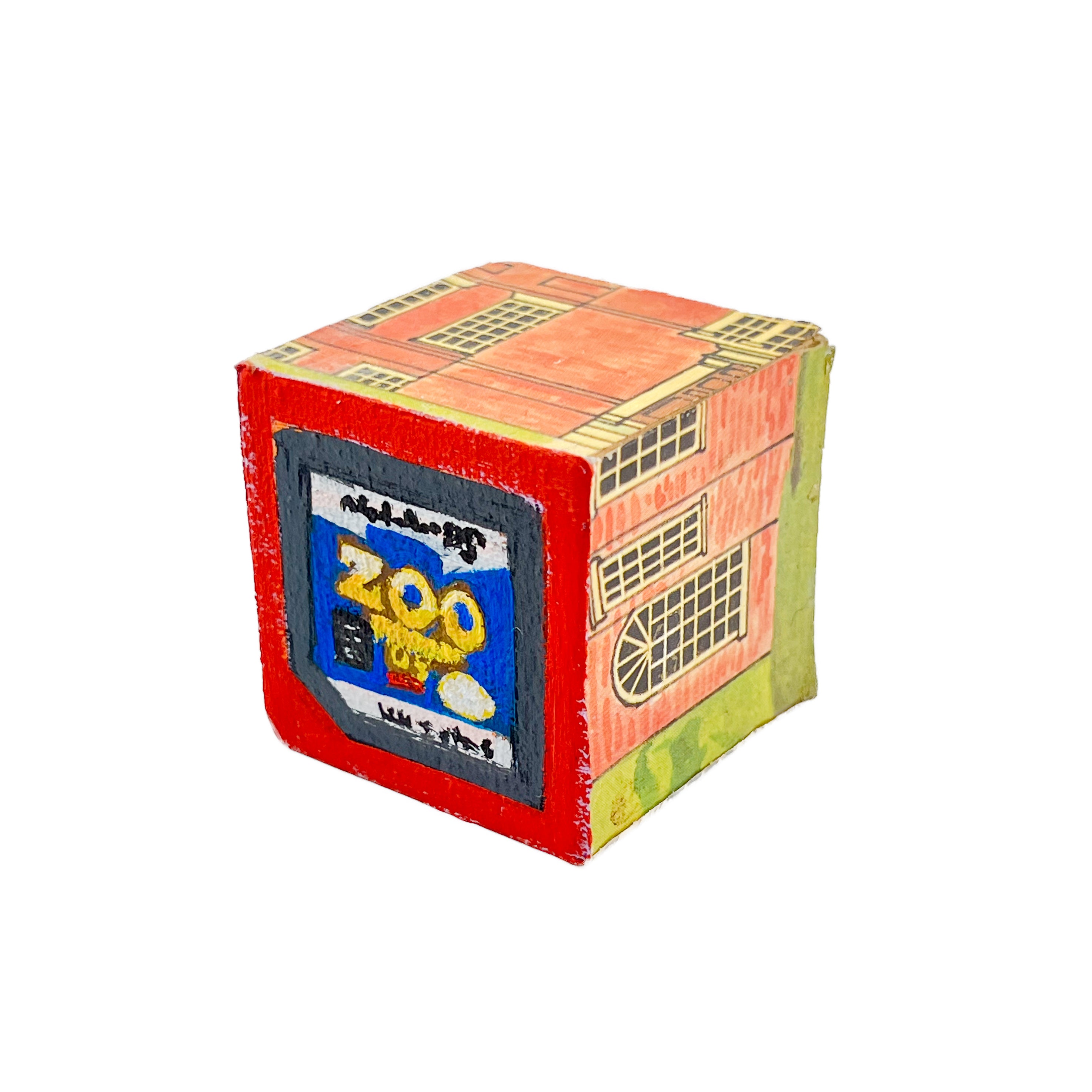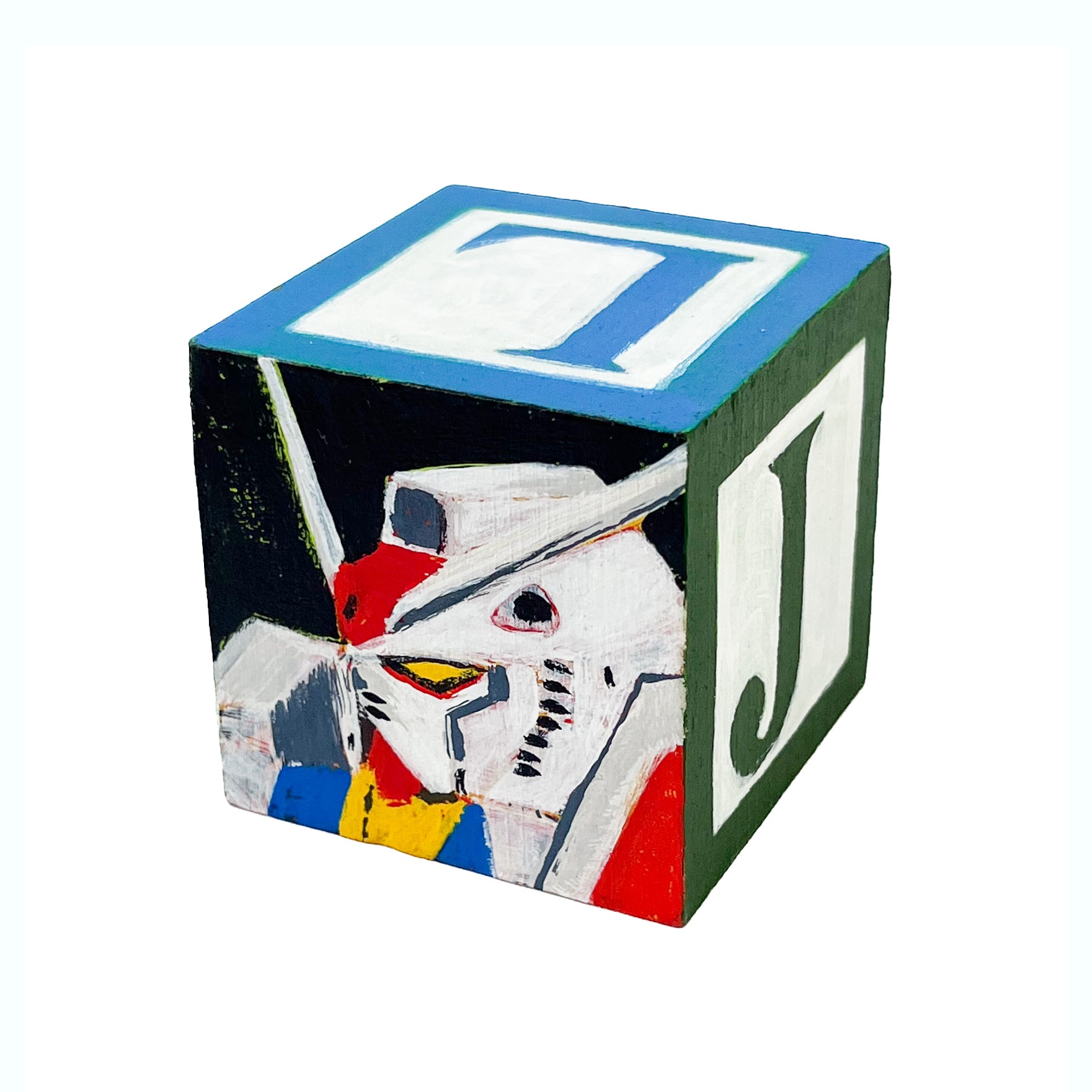 These small painted blocks were born out of the challenge to create tiny artworks - under 3" x 3". Since I've been painting a lot of toys lately, I had the idea to use children's ABC blocks as my painting surface, and create a kind of art-toy.